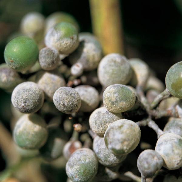 Peronospora napada najprej listje in potem grozdje. Oidij pa napada najprej grozdje in potem listje. Jagode, ki jih je napadla peronospora postanejo sive le tedaj, če so še drobne; drugače jagode pri napadu peronospore porjavijo ali pa dobijo višnjevkaste liste. Jagoda je tudi znotraj rjava in je taka, kot bi bila sparjena. To je zato, ker živi koreninica peronospore v notranjosti jagode. Na koncu jagoda počrni in se posuši. Pri oidiju pa koreninica jagode živi vedno na površju jagode. Jagoda postane zunaj siva, znotraj pa je zdrava. Pri oidiju oboli le kožica jagode. Kožica se razpoči, tako da vidimo pečke. Pozneje se cel plesniv grozd posuši in smrdi po plesni.